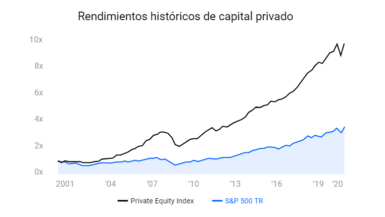 Private Equity Index vs. S&P 500 Index – rendimientos históricos.